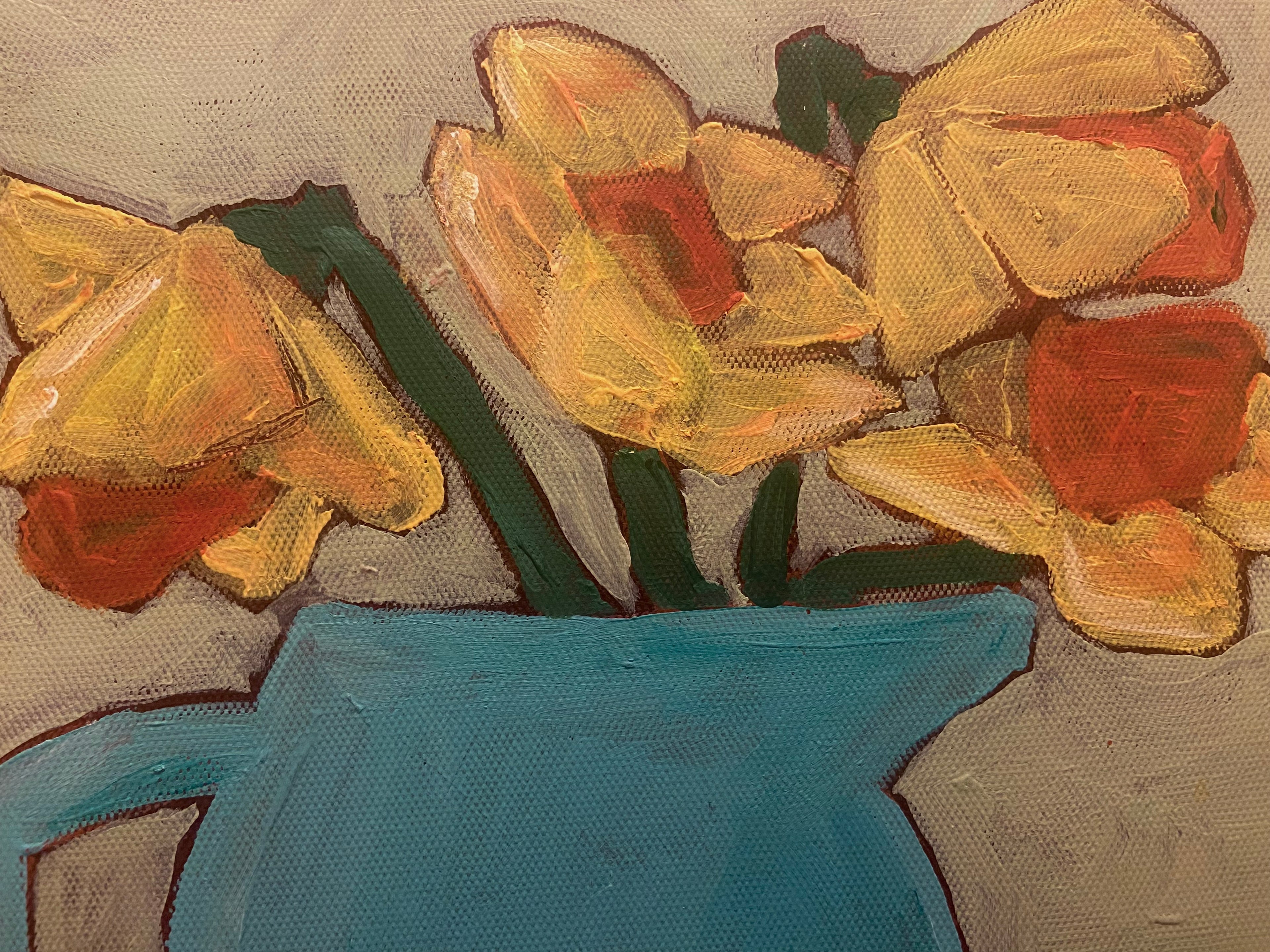 Her work focuses on florals, landscapes and bright uplifting paintings in a variety of media.